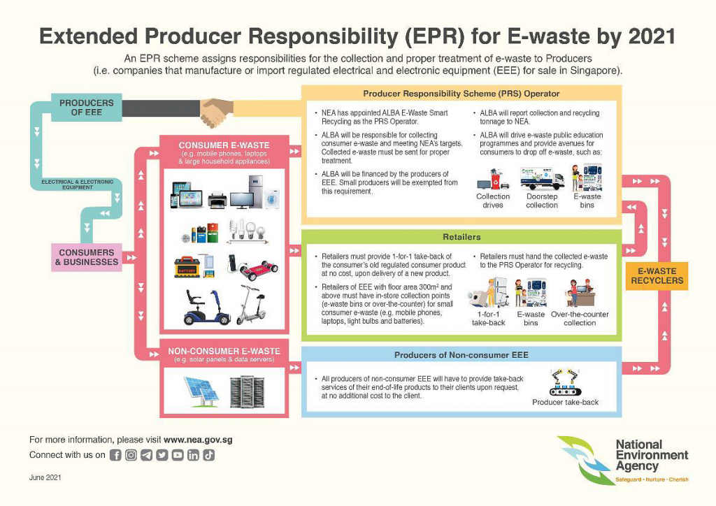 ALBA 電子廢物智能回收是 NEA 指定的生產(chǎn)商責(zé)任計劃運(yùn)營商。生產(chǎn)商責(zé)任計劃運(yùn)營商將協(xié)助零售商收集電子廢物到有資質(zhì)的電子廢物回收商。7 月 1 日起,回收桶位置列表可在 ALBA 網(wǎng)站 查看,ALBA 助力增加可持續(xù)的移動應(yīng)用。